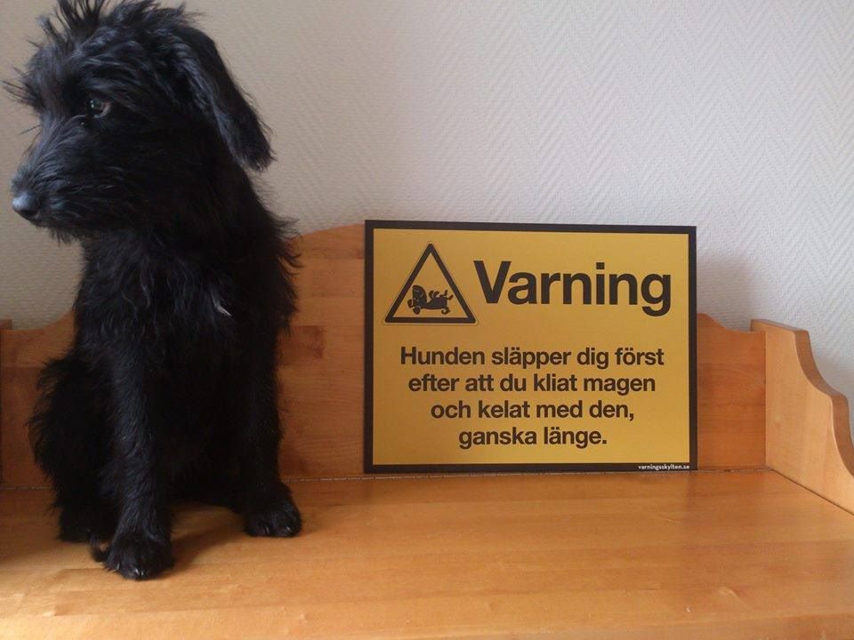Lite annorlunda varning för hund, eller hur? Kanske funkar bra 🙂 Mer